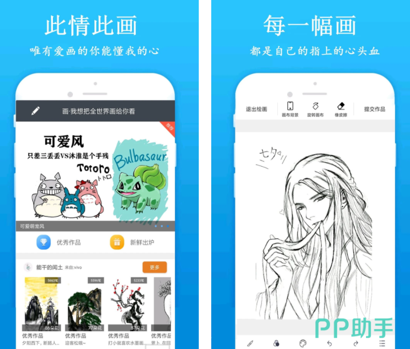 有强大的指绘功能,可以用手指来操作在线画笔、模糊喷枪工具进行图案绘制,为了方便手指操作,软件精简许多绘画功能,让你创作漫画更简单。软件内有指绘交流社区,与其他画画大触交流画漫画心得,从其他人的精美作品中获取灵感,充分感受画漫画的乐趣。