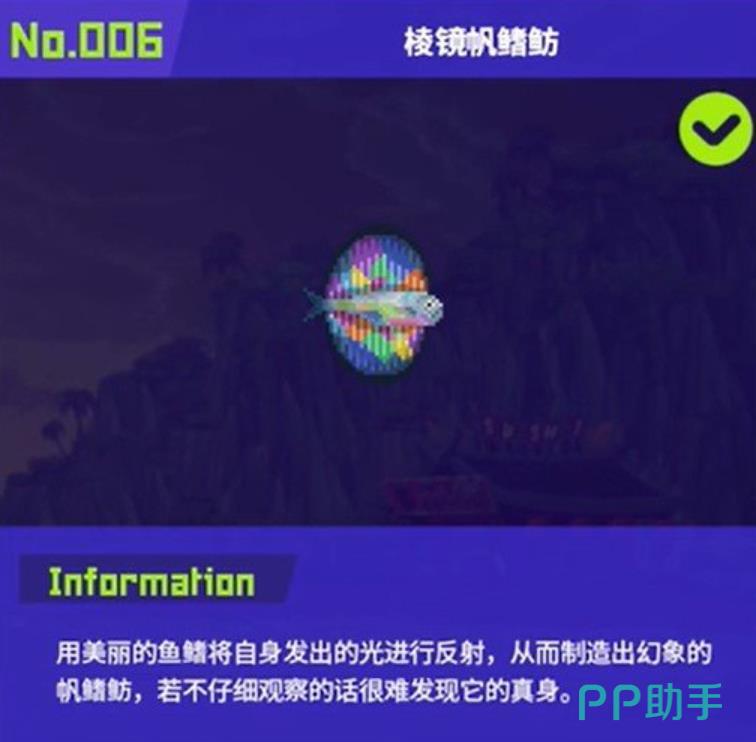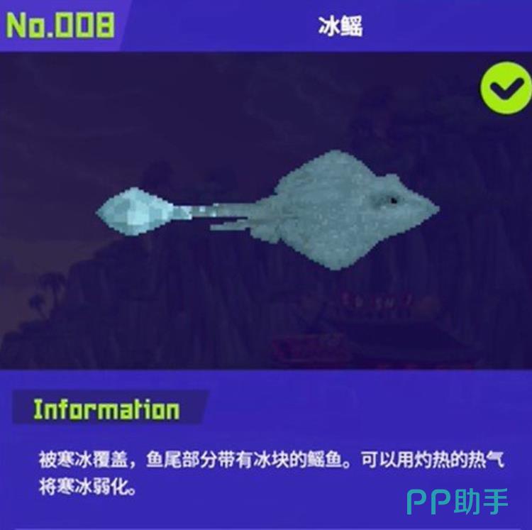 银泰坦触发鱼是一种深潜性的生物,一般生活在50米以下的水下,对除闪电以外的一切攻击都免疫。所以,你要抓到它,就必须带上相应的装备。斑点电鳗生活在大约30米深的海床上,身体里充满了电流。抓它的时候,你要离得远远的,因为你的武器很容易就能抓到它。