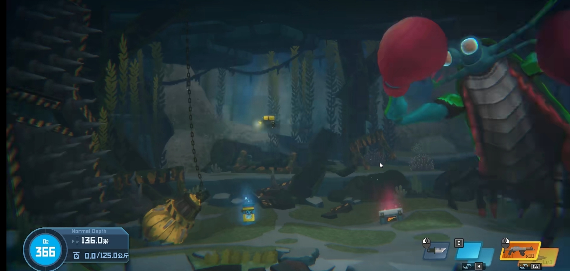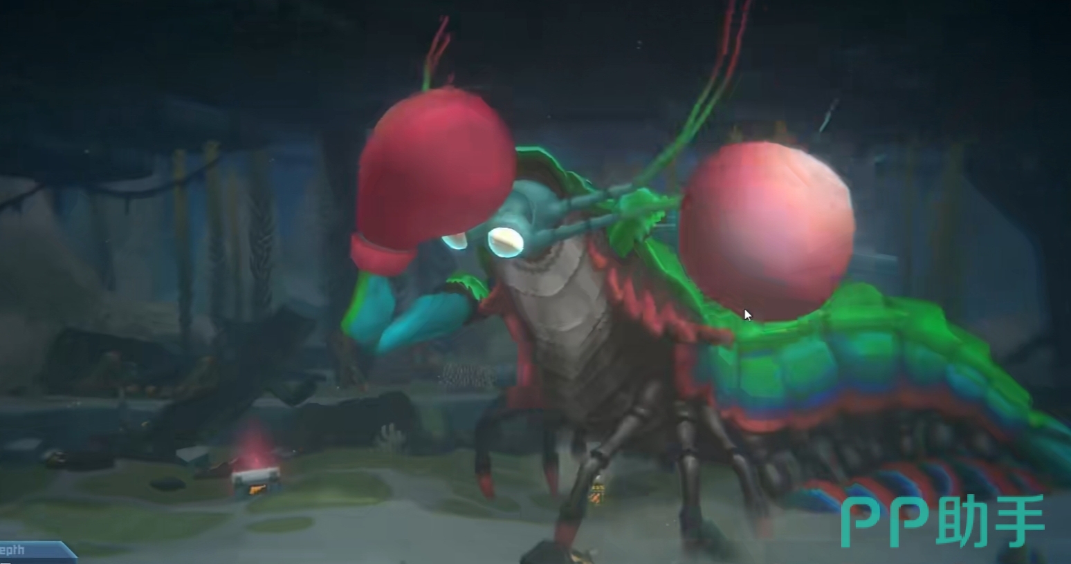 玩家不要攻击螳螂虾的背部和腹部,因为这会触发螳螂虾的蛄蛹能力,并且受到伤害。一开始,玩家可以站在螳螂虾的上面,如果螳螂虾想攻击,玩家可以打螳螂虾的眼睛。然而,需要注意的是,玩家不要提前出现在螳螂虾的眼前,因为这可能会导致螳螂虾与玩家保持距离。