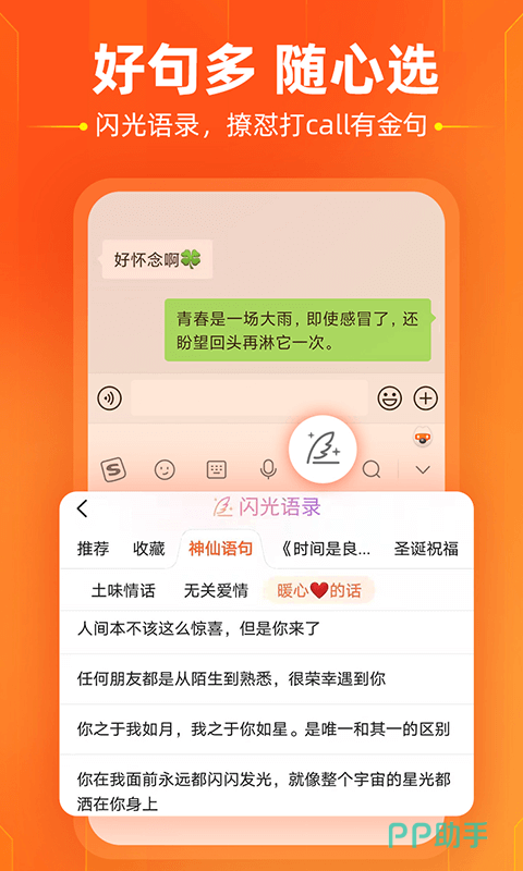 搜狗输入法是一款拥有超大中文词库及短语的打字软件。是一款打字时能够协助你精准输入,智能匹配后面的文字,让你的打字更加的方便快捷。例如你打出一首诗的前一句,它就会自动推荐出这首诗的下一句,不仅仅是我国的诗句,像当下流行的一些短语,社会化都可以。而且支持语音输入拼音输入。