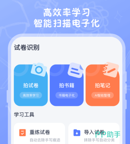 利用此软件来制作试卷,主要是可将试卷进行扫描,如果有错题的话会打印出来,想让自己的试卷恢复成空白试卷软件,还具备去除手写笔记的功能。尤其是在学习的时候,这款软件是非常好的帮手。除了自动识别以及清楚自己的功能以外,它还支持分享和打印,比如连接打印机以后就可将扫描的东西打印出来,包括学习的内容以及试卷的内容。