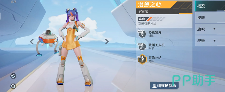 第二个英雄的脉冲,脉冲定位是辅助,属于治疗支持型技能。他的第一个技能是召唤一架治疗无人机,可以为团队的所有成员增加生命值,大招是呼叫支援仓库,在那里会掉落盔甲、道具和药品,并且这些掉落的物品等级会高于本身物品等级。