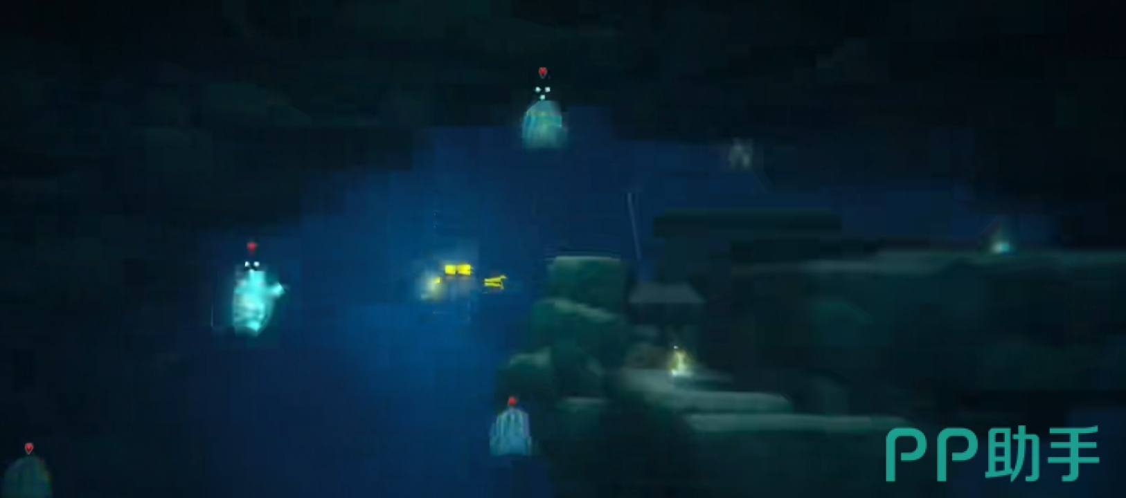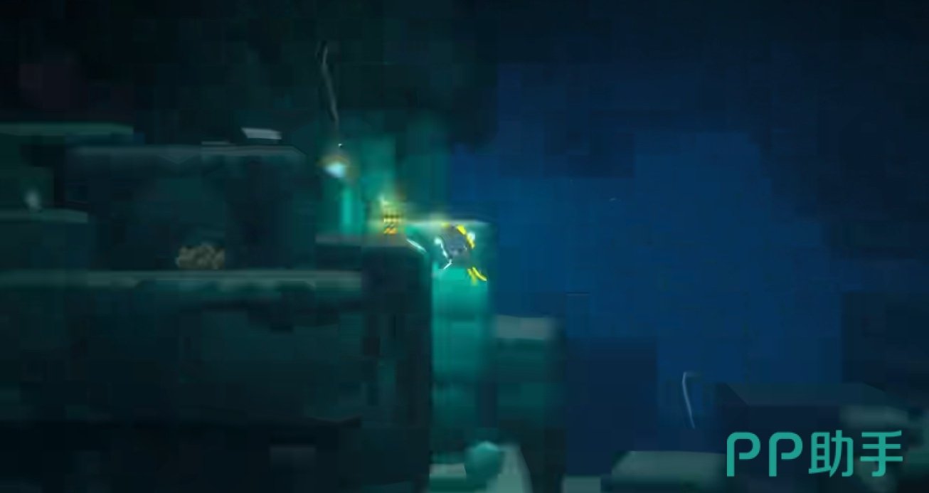 玩家到了深海一路摸着天花板向左,便会获得一个弹药箱,进去后顶头向左这里往下潜将会看到13只电水母。打败他们之后要回洞口补一下弹药,再回来直接上下把两个自爆水母引炸。