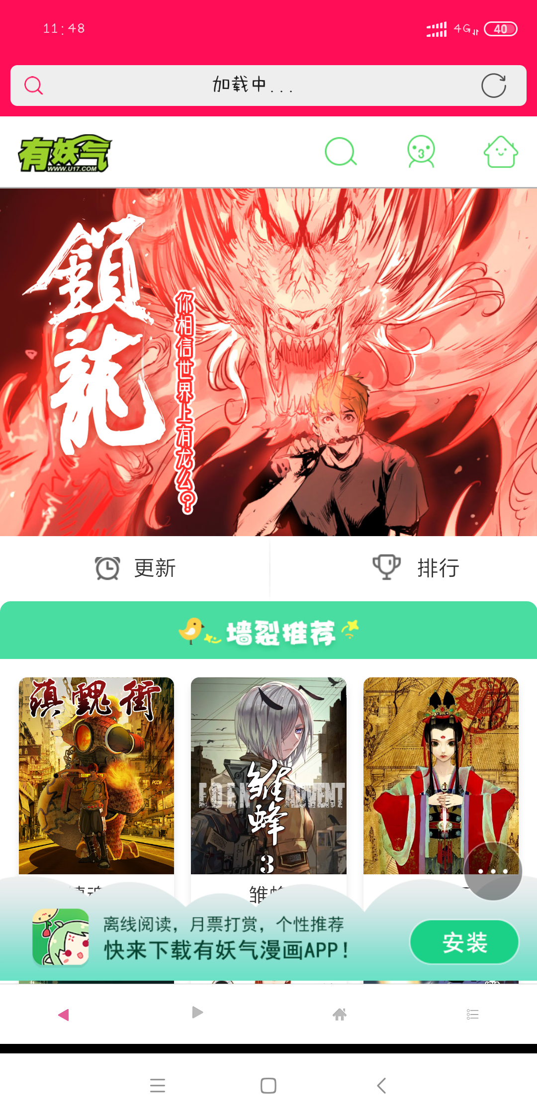 4.除此之外,DiLiDiLi也是连接其他网站的通道。点击“百度”即可直接进入百度进行搜索,无需下载软件。点击“有妖气”即可直接进入有妖气官网观看海量漫画。点击漫画即可免费试读,遇到心仪的漫画可以点击左下角心心,即可收藏,点击最下方列表即可查看章节目录。