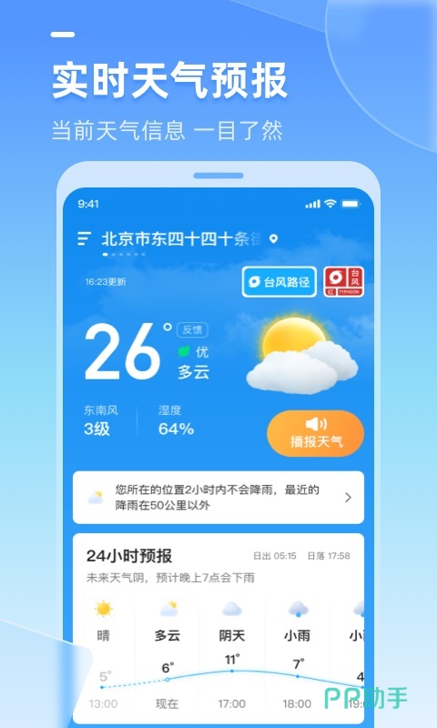 24小时内的天气预报,下雨指数温度变化以及该穿什么样的衣服在这里都能够进行查询,帮助大家提供便捷生活提醒,比如什么时候该洗车,什么时候该添加衣服可以说,只要有我的天气预报之后就解锁了全新的生活小技能。