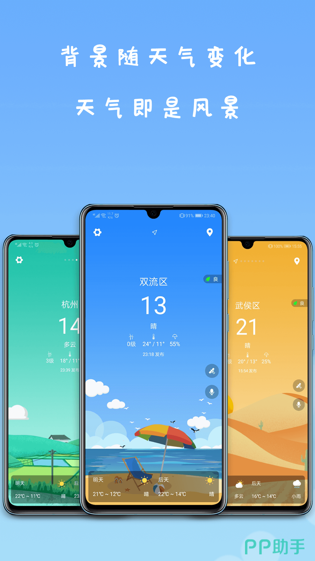 在这里随时随地都可以进行天气气候的查询,甚至每一个小时的温度变化以及15日内的天气变化情况,空气质量的预报,都可以打开桌面天气查看,进行自然灾害的预警和温度变化的提醒。