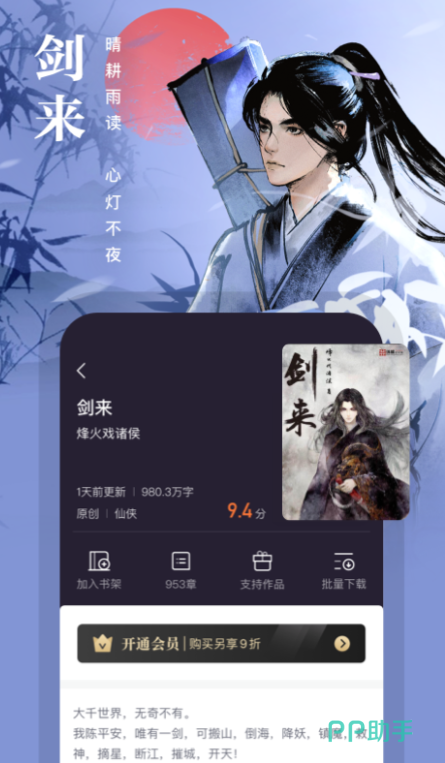 该软件为著名的小说网站起点中文网的官方软件,软件中有着不计其数的正版网络小说。该软件签约了上百万位原创小说作家,这也让软件的小说版权多的数不胜数,软件中各个作者的小说还有其书友圈,读者可以加入喜欢的小说相应的书友圈,与喜欢同本小说的小伙伴们一起讨论小说的剧情以及小说界的惯例一起每天催促作者更新新的章节。