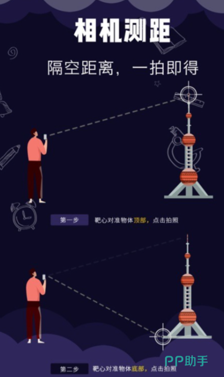 这是一个。非常精准的测量软件,通过用户的手机摄像头和传感器,就可以测出物体的距离和高度了,不但能够测出自己的身高,还可以测出建筑物的高度,只需要输入自己的身高,就可以通过摄像头的转换功能算出建筑物的高度。