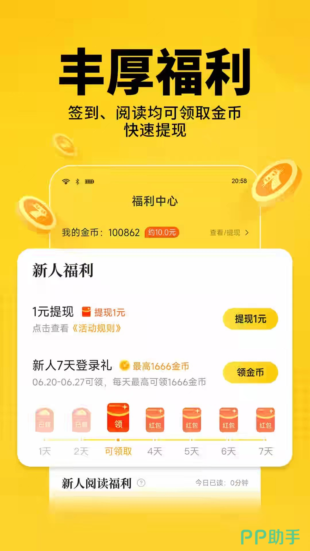 番茄免费小说,从名字上我们也知道,它是一款免费看小说的APP。这款小说新人进入就有大礼包,免费的金币,并且有许多的活动福利,用金币可以兑换钱来提现,并且番茄免费小说有海量正版小说。除了看书还可以听书,解放我们的眼睛。还有兴趣个性化推荐,根据阅读爱好个性化推荐是一款非常不错的软件。