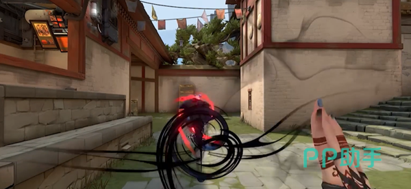 Q技能幽爪是一个带有控制效果的技能,使用方法跟手雷差不多,直接左键或者右键朝着指定位置投掷,在投掷空中时按Q键可以触发提前落下的效果。在成功落下之后这个球形会破裂,使附近一定距离的敌人受到束缚效果,此时敌人没有办法移动,也不会听到声音。如果此时有其他技能的配合,比如说猎枭的大招,就会触发额外的巨额伤害,所以也是一个比较吃配合的攻击手段。