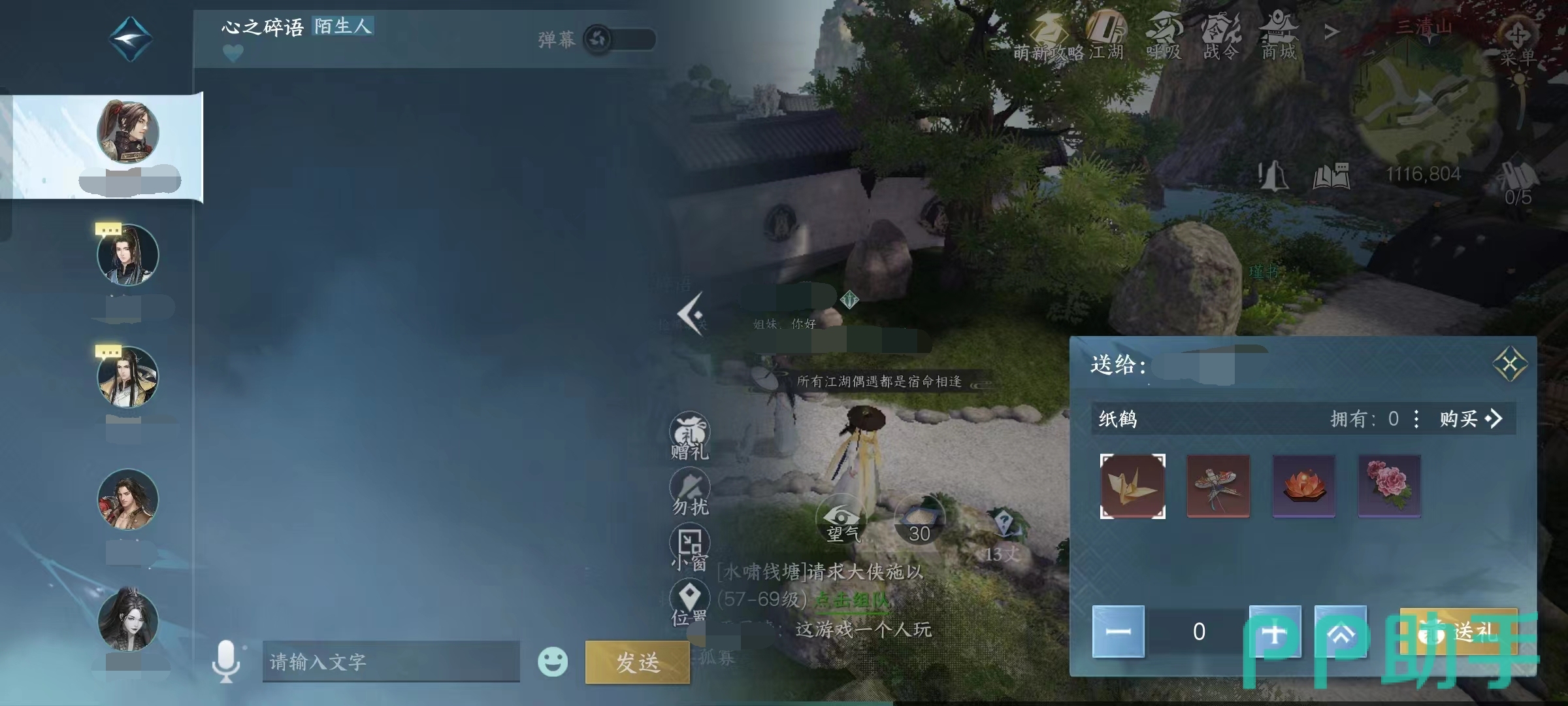 找到送礼物的朋友,点击好友图框所在的位置,将进入与好友聊天的界面,在界面的右下角找到赠送礼物的按钮,这时玩家就能赠送礼物了。