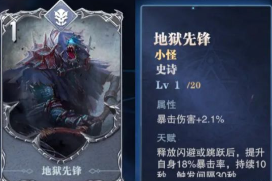 地狱先锋:这是一张暗系魔卡,它的属性是增加暗属性伤害和暴击率,它的天赋是闪避后增加暴击率。地狱先锋可以提高维吉尔的暗属性输出和暴击能力,尤其是在闪避后可以大幅提升暴击率。撕裂者:这是一张物理魔卡,它的属性是增加物理伤害和暴击率,它的天赋是攻击时有概率造成流血效果。撕裂者可以提高维吉尔的物理输出和持续伤害能力,尤其是在攻击时可以有概率造成流血效果。