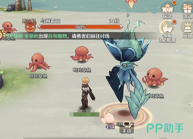 组队到达目的地后,就只能自行寻找紫雾首领BOSS了,刷新点不固定,紫雾首领BOSS出现的固定时间为11、13、18、22、24点,boss的名称也是不固定的,有的叫鲨鱼霸主、有的叫乌贼霸主,反正很大一只的,非常明显。