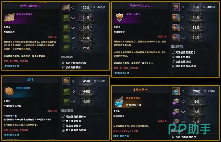 每通关一层,会给通关该层的角色发放一次奖励,但账号下第一次通关该层的角色和后续角色第二次通关该层所获得的奖励是不同的,第一次通过时会给予角色一些比较特殊的材料之类的东西比如收集里的巨人之心,伟大艺术品,人物技能点数,技能符文等,后续其他角色再来爬塔的话由于你已经获得了这些特殊材料的奖励所以只能得到对于阶段的强化材料,但是对于小号来说这些强化材料也可以快速提升你的装等,所以爬塔这个玩法可以使你快速提升自己的等级。