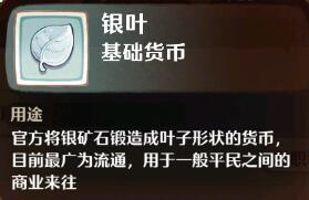银叶:是用于平民之间商业来往的基础货币,也是所有货币当中价值最低的一个,虽然价值低,但是在装备强化,与各大npc之间进行交易都是需要的,获取方法也非常简单,快递活动以及日常任务玩法都能够获取。