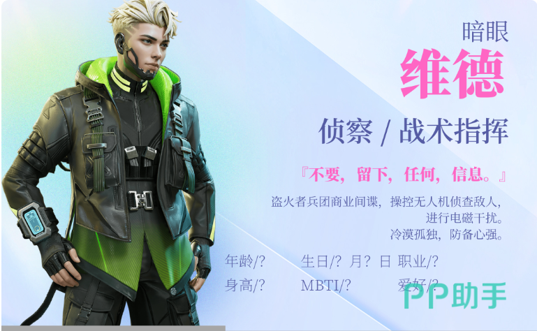 他的被动是信号定位,可以利用他扫描的功能来找出下一个需要的信号区,这个没有技能的冷却时间,追猎本能是另一个被动,他的这个被动能够将对手的脚步声进行显示,提示在准星附近,从而能够帮助自己和队友更快更准确的额寻找到对手的位置,狂烈脉冲是他的战术技能,狂烈脉冲这个技能主要是对周围的环境进行扫描,能够对半径60米之内的对手都进行检测,而且直接限时对手的位置持续五秒,这对于作战其实是非常重要的一个能力,暴露位置才能够更好的瞄准对手。