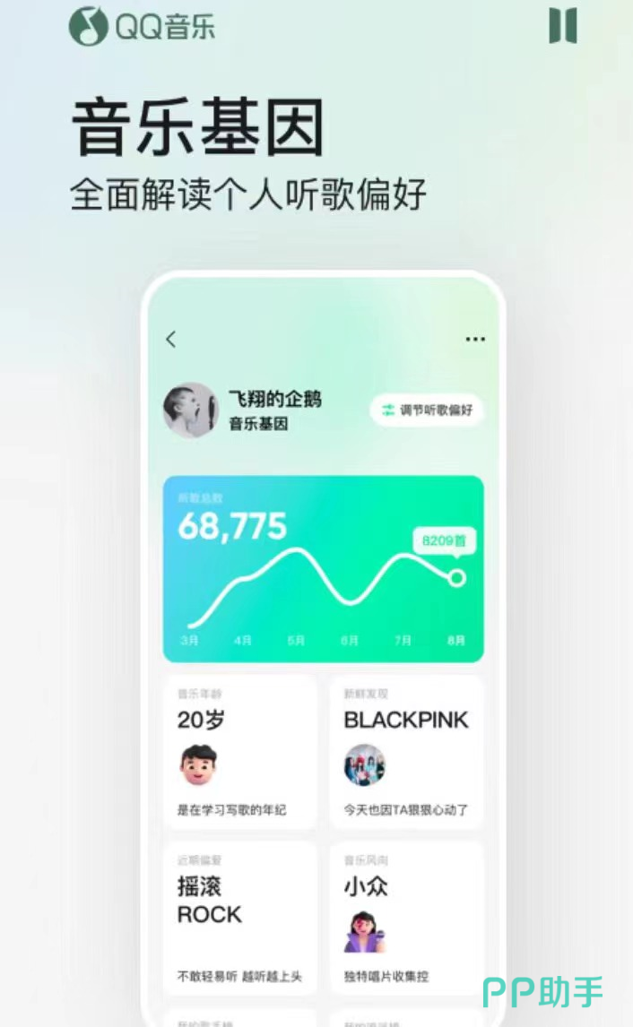 QQ音乐也是海量高品质正面曲库,有小众乐门,一应俱全,还有音乐基因全新象限推荐页,或者是个人页来探索你的音乐DNA吧,还有歌单全新推出了歌单卡心仪歌单,搭配精美模板与贴纸分享给好友,还有个性化的图标,多彩炫酷的图标,随心换点亮,你的屏幕还有黑胶播放器,但是需要会员呀,会员播放器全心向前非常炫酷的,还有大家都在听一起听和大家一起听并且找到志同道合的朋友还有还有一键搜索发现订阅精选播客。还有音乐指数音乐指数榜,将喜欢的音乐添加到自选列表。