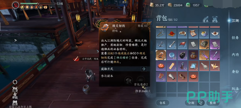 第一种获取方式(免费的):想做橙武就需要两个材料,第一个大材料也就是俗称的大铁,叫绝域孤石,还有50个小材料,叫朔关韧铁。那这两个材料目前都是可以从舞阳城副本产出的,例如舞阳城·六尊使,舞阳城·牧野弥。集齐全部材料可以完成【神兵耀世】任务,完成后就可打造神兵,俗称橙武。