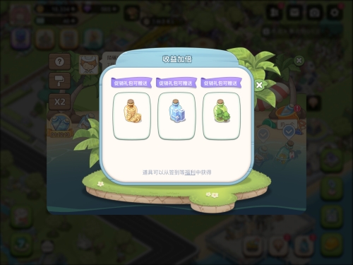 若玩家点击漂流瓶订单界面左边的双倍按钮,可以使用道具触发收益加倍效果,玩家只要选择自己所需要的收益加倍效果,即可在一定时间内享受该效果带来的加成。