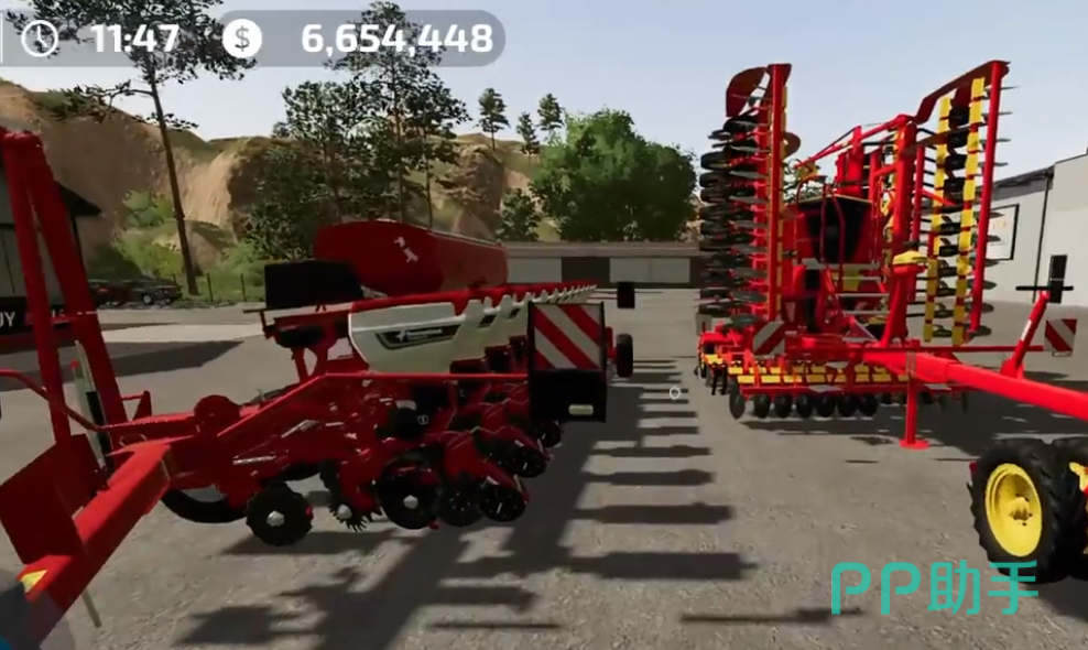 播种牧草需要在设备里面买一辆特殊的翻晒工作机,不仅可以收割晒干牧草,还能进行干草包的制作。游戏里面牧场的成长周期较短,玩家查看田地牧草成长状况成熟后可以开启收割机。收割的技巧是,贴着农田最边缘,收割机竖着开。然后收割机路过的牧草会放倒在地上,接着玩家要开启翻晒机进行干草制作,同样收割方向也是竖着。开这些机器有一个小技巧,玩家上车摆好方向之后,就可以点击屏幕右下方的智能机器人帮忙驾驶,玩家可以解放双手下车,进行多线操作。