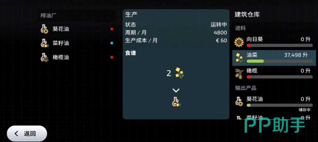 首先玩家要准备8万的资金,商店里面购买榨油厂,初期可以进行葵花油、菜籽油与橄榄油等三种植物油的制作。如果玩家前期走的是种植业路线,有许多植物都能榨油,那么推荐尽快买榨油厂,一个月就能回本。