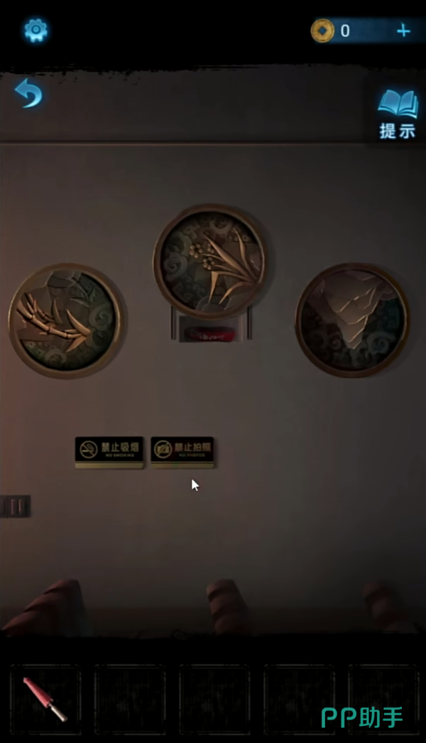 根据神龛下面的图案进入木门后面,点击柜子根据神龛上的图案移动物品,物品顺序为:上面从左到右【酒壶、折扇、灯盏】,下面从左到右是【金元宝、签筒、酒杯】,灯盏破掉之后就可以得到一个道具【布球】,将布球放在神龛里面,然后返回外面戏台上,根据手机拍到的照片来进行调整颜色顺序(这里忘了记录照片的小伙伴可以返回木门后面点击戏台就可以看到了),蝴蝶颜色从左到右是【黑、蓝、白、红、黄】,高度顺序如下图所示,可以在树洞里拿到道具一个【靠旗】和一个【拨浪鼓】,然后返回暗门里面把【拨浪鼓】放在神龛里面,进入里面的门把【靠旗】插在右边桌子上面获得道具【布老虎】,把【布老虎】放在神龛里面,获得一把钥匙,返回戏台使用钥匙打开戏院的门。