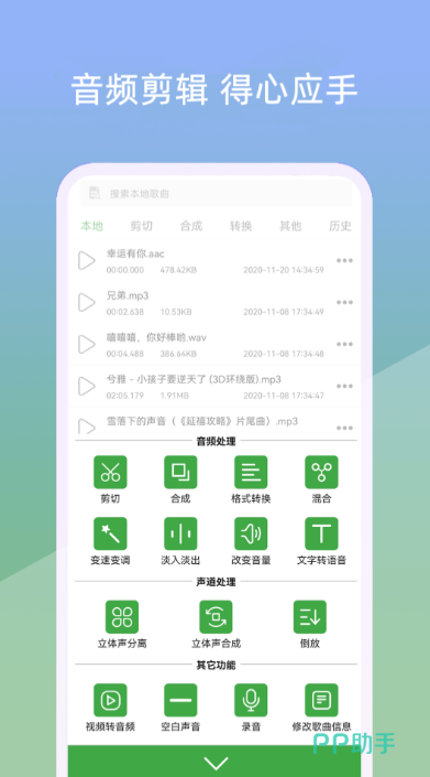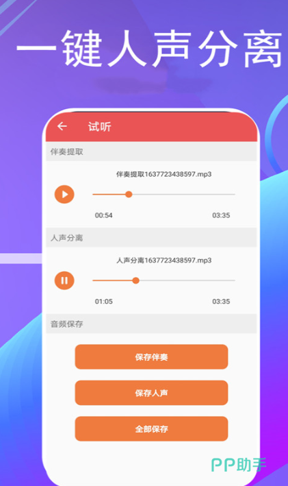 很多提取原声的软件把原声提取出来之后就只保留了纯音乐,然而这个软件可以把音乐原声和纯音乐分别保留成两个音频文件还可以对音频文件进行非常专业的剪辑,大家可以从手机本地文件中像软件里导入音频,可以按照大家的自定义来剪切音频,剪切之后还可以对音频的格式进行更改。