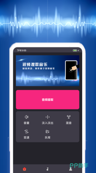 这个软件为大家准备了几乎可以针对任何格式的音频视频中的音乐提取在这个软件里只需要非常简单的操作,就能把自己喜欢的音乐提取出来,用做自己的背景音乐。还能够在音乐的不同时段调整音量达到风格独特的效果,也可以将多个音乐混合成一个音频文件。