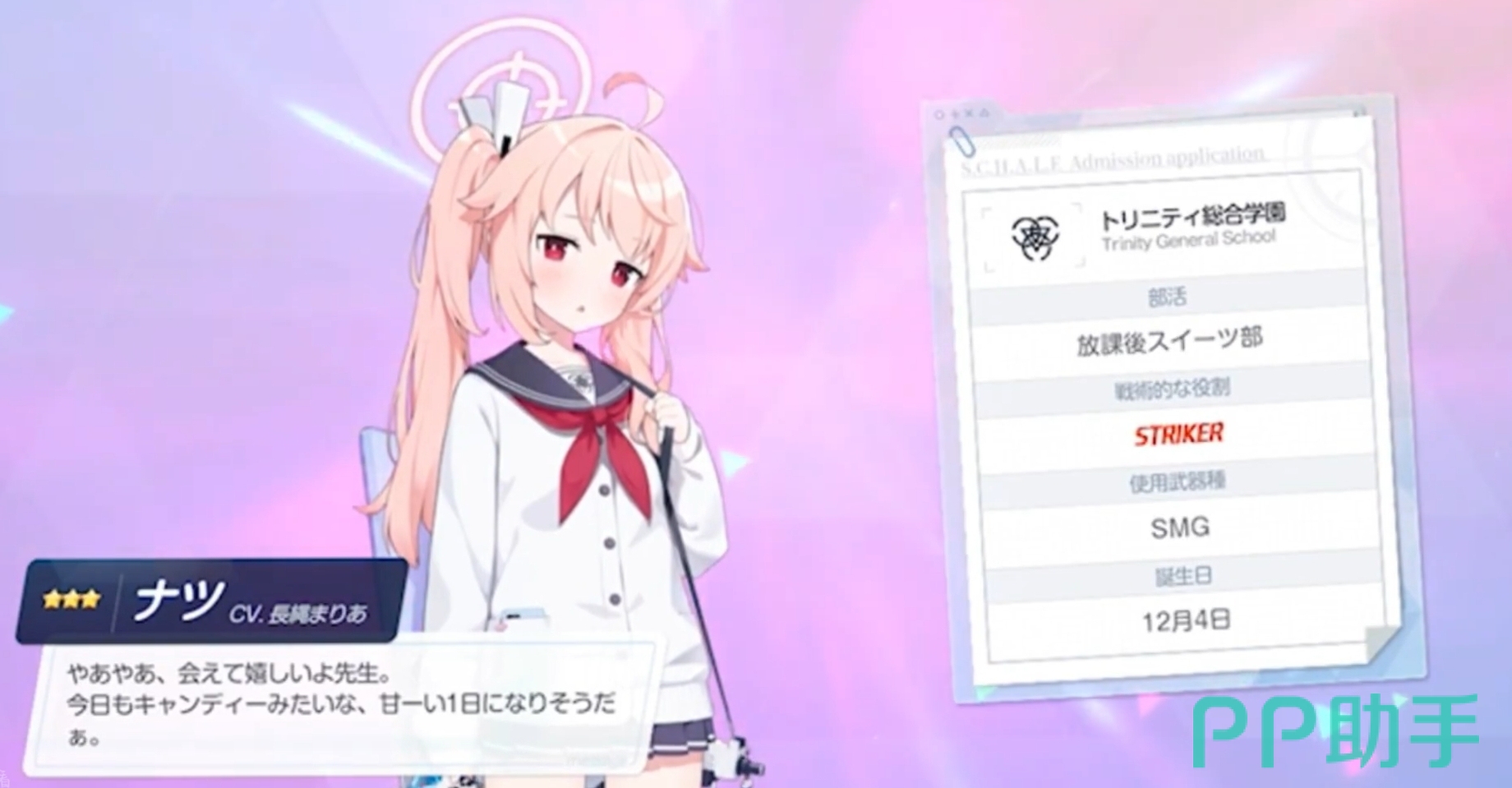 技能四:满嘴的幸福,这个技能在玩家使用EX技能时,可以将自身受到的恢复效果强化,这在对战时可以极大程度的保证治疗效果和人物的存活。