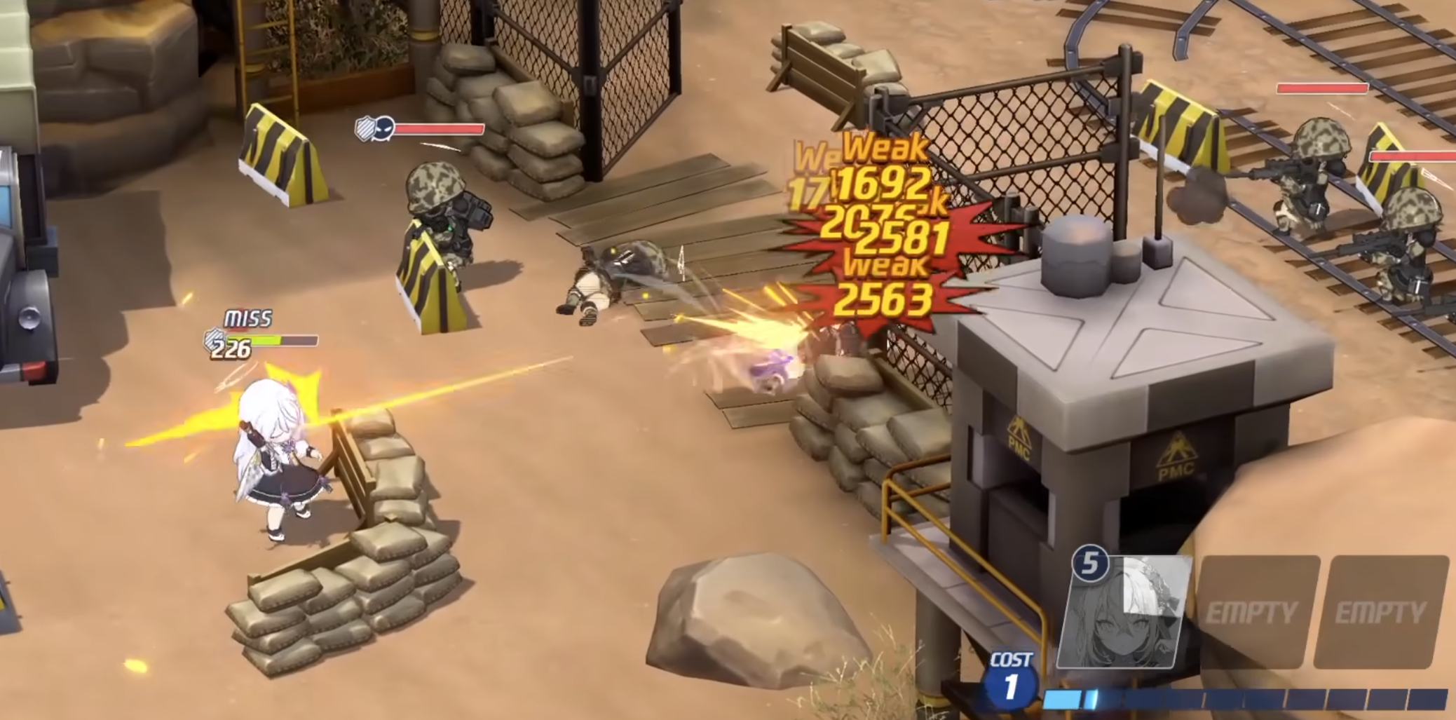 白洲梓的基本技能名为毁灭之矢,在战斗开始后,每过三十秒,就会对一名敌人造成伤害,并且还能削减敌人的防御。同样的,技能升级后,伤害和防御削减效果都会得到提升。从技能效果来看,由于有不错的伤害倍率,让这个技能非常适合对抗小兵,基本打谁谁死。