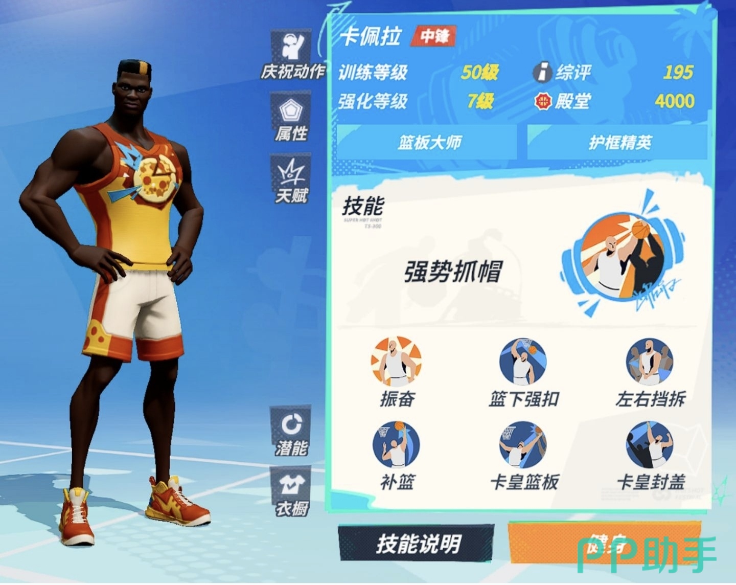 首先为大家推荐的是这款游戏当中的中锋卡佩拉,它的优点在于抓帽能力非常强并且挡拆能力也十分强,想玩中锋的小伙伴们选择他一定不会后悔,它在于中锋当中的强度也算是顶级的了,小前锋的话,推荐新手玩家选择詹皇,这个角色是新手任务时活动送的,同样的也拥有很强的盖帽能力,大招用来打关键球是非常棒的。