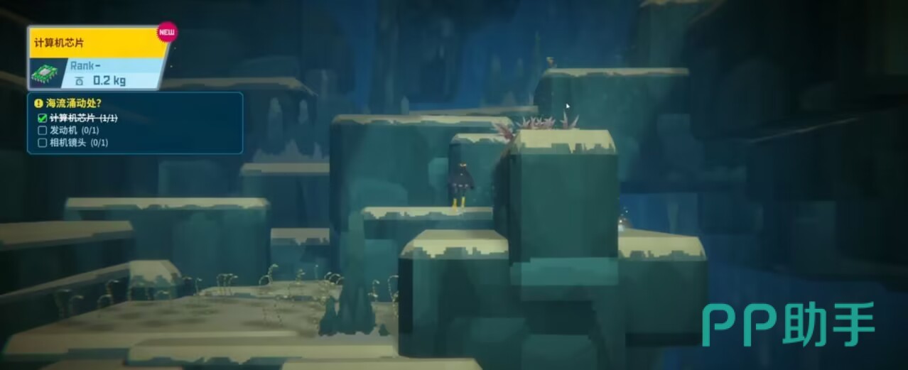 修复无人机任务所给到的提示是前往海流涌动处寻找计算机芯片、发动机还有相机镜头,没有给任何的任务指示,其实意思就是需要我们前往钟乳洞,因为只有那一块儿才会有暗流,大概位置在潜水之后70英尺左右,尽量的向右下方移动,每个配件如果出现在屏幕的话,会有着黑色感叹号的提示。