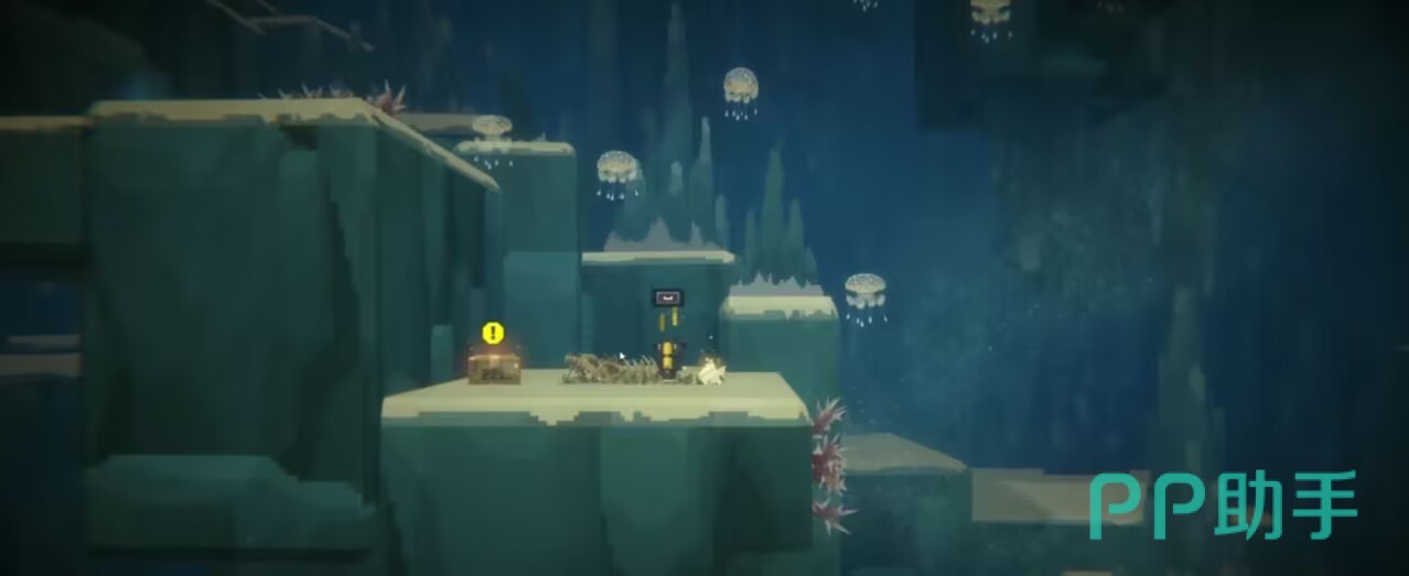 钟乳洞的三个暗流是属于循环喷射的,每次持续五秒,会有两秒的停顿间隔,我们需要在这两秒的空格期间按住shift加速,期间还要尽量躲避锯鲨的坠追击,当然如果有武器的话也可以将其干掉,对于新手来说做这个任务的时候最怕遇到这个生物,另外一个就是三齿鲨。