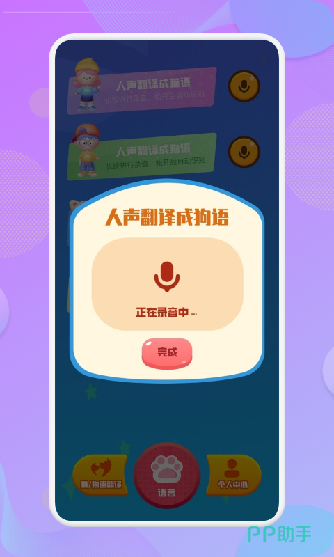 猫语狗语翻译交流器是可以支持免费猫语和狗语录音翻译的一款软件。大家在买回来新的宠物之后,需要对宠物进行一些训练。比如在家的时候,哪些事情不能干,哪些事情能干,大家都可以通过猫语狗语翻译交流器跟自己的宠物简单交流。来协助宠物的培训。当然也可以建立档案馆。对宠物曾经生过的病以及打针,驱虫或者洗澡进行提醒设置。