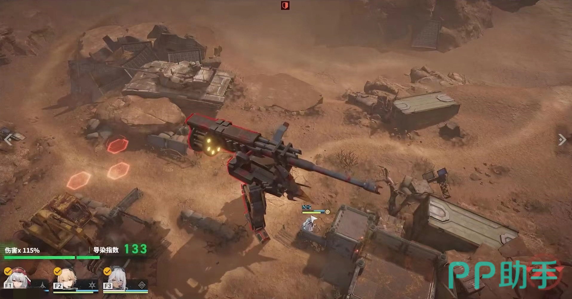第1个技能定向炮击,虽然机甲动作看上去有些迟钝,但是并没有减少攻击输出威力,选中半径8格内目标,对其造成一次动能伤害。第2个强势践踏,利用自身绝对力量去践踏敌人,选中指定范围地格目标以后,对其5乘2区域内所有目标都造成一次群体动能伤害,这一次伤害要比定向炮击数值更高。第3个爆裂威慑,会选择两个区域执行预警提示,每一个区域范围都是三乘三,预警之后下回合开始将对区域内所有单位造成群体伤害。