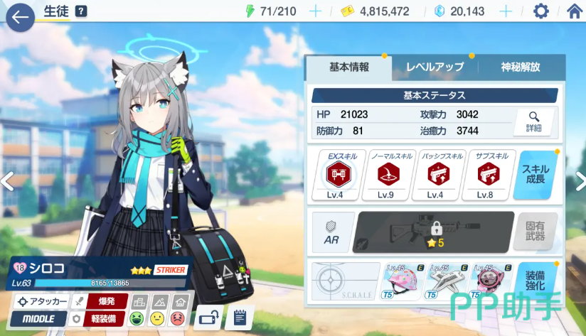 其次,我们来看看白子,他是一个三星的Supporter类型的角色,也是游戏刚开服第一个常驻池子UP的学生之一。他的技能是砂狼,可以在攻击时给自己或者友方增加护盾,并且每次攻击都会增加自己的速度。他的优点是支援能力强,可以保护自己或者队友免受伤害,而且速度快,可以提高行动次数。他的缺点是输出能力较弱,只能造成单体伤害,并且护甲类型是轻甲,比较脆弱。白子适合用在需要保护队友或者提高速度的场合。