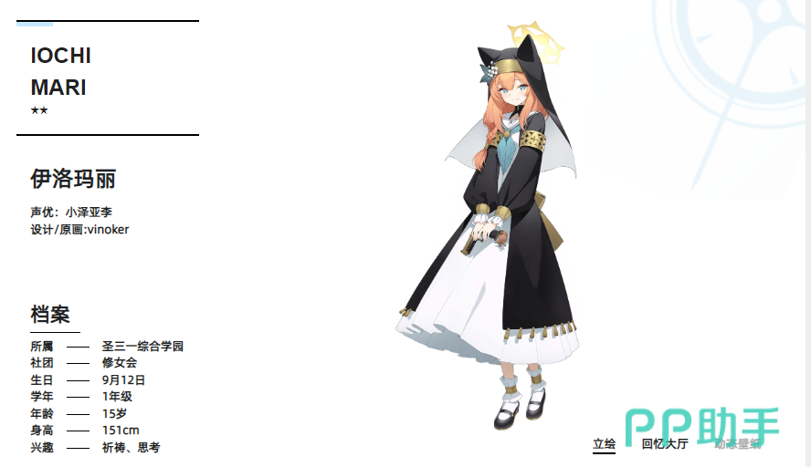 今天小编带来了蔚蓝档案玛丽角色介绍,玛丽是蔚蓝档案中的一个学生角色,玛丽是三一综合学园修女会的一员。但虽然整体给人很可爱的印象,但是个性稳重,许多学生都喜欢来找玛丽来商讨问题。她有着强大的辅助能力和不俗的伤害能力,她还有一个体操服版本,更加活泼可爱和强力。小编接下来就为大家介绍下玛丽的玩法及、角色相关的游戏攻略。