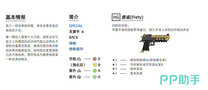 总之,玛丽是一个充满魅力的可爱学生人物,她不仅有着非常Q萌的外表和温柔个性,还有着强大的辅助能力和不俗的伤害能力。她是一个值得您拥有和培养的角色,希望您能在游戏中与她相处愉快。