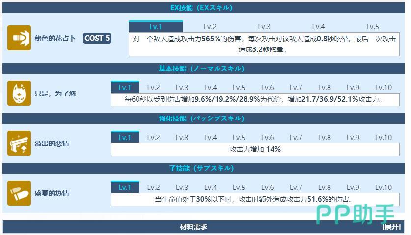 三技能:(溢出的恋情):攻击力增加14%,这样的输出可谓是无敌了!