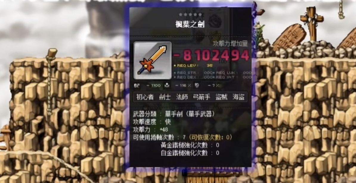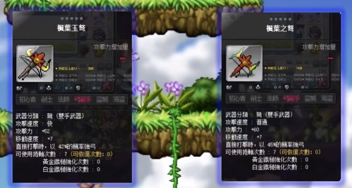 在这11种武器中,帽子是可以免费获得的,但这个帽子的等级比较低,是初始等级武器。而其他枫叶武器的等级就高得多,每把武器最开始就有43级,对应着游戏中的各个职业。这其中还有两把武器稀有度比较高,分别是旗帜和头盔,属性特别好,非常值得兑换。