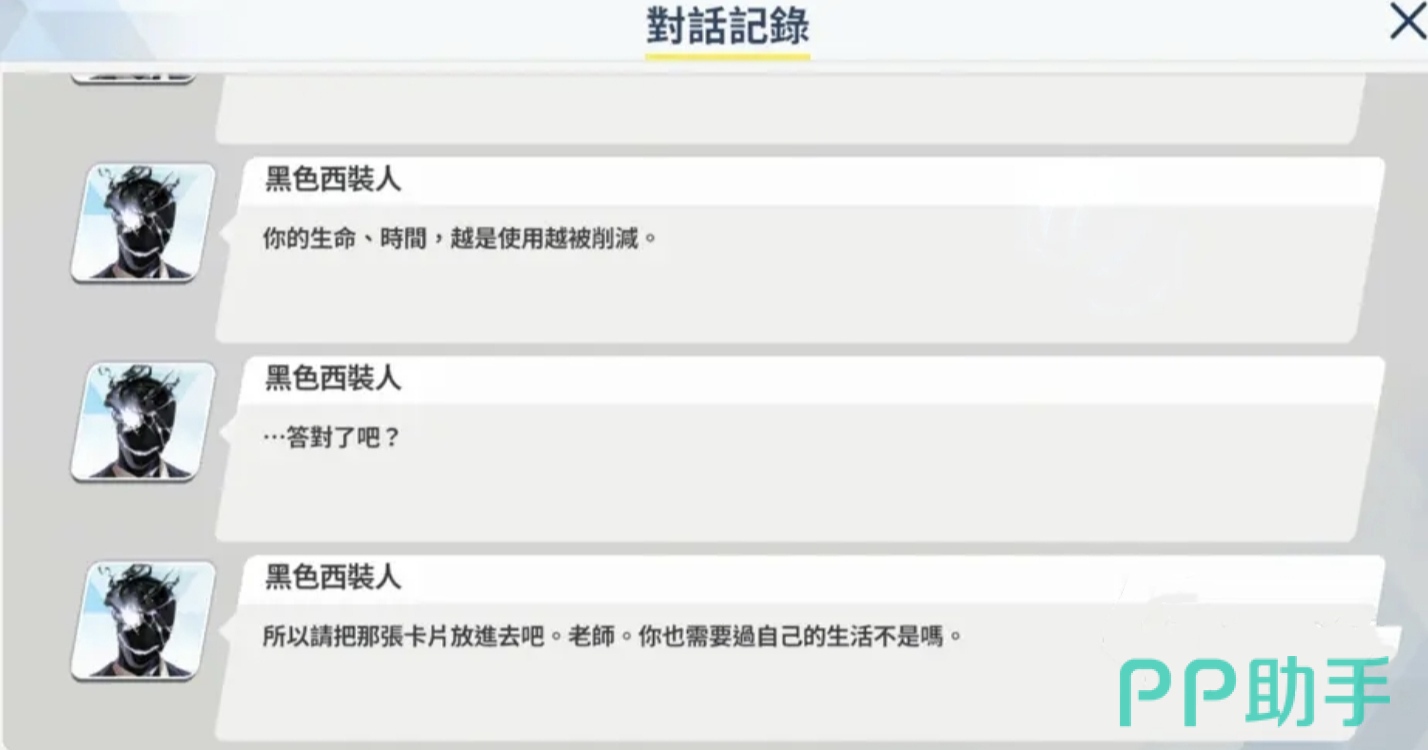 按照以上内容分析,黑服大概跟上周末的剧情失败有着莫大的关联,同时他也是让白子黑化的罪魁祸首之一,但是在这一周的时候他又突然改变了立场选择作为中立者,同时在玩家们遇见困难时选择帮助,谁也搞不清他到底是正还是邪。