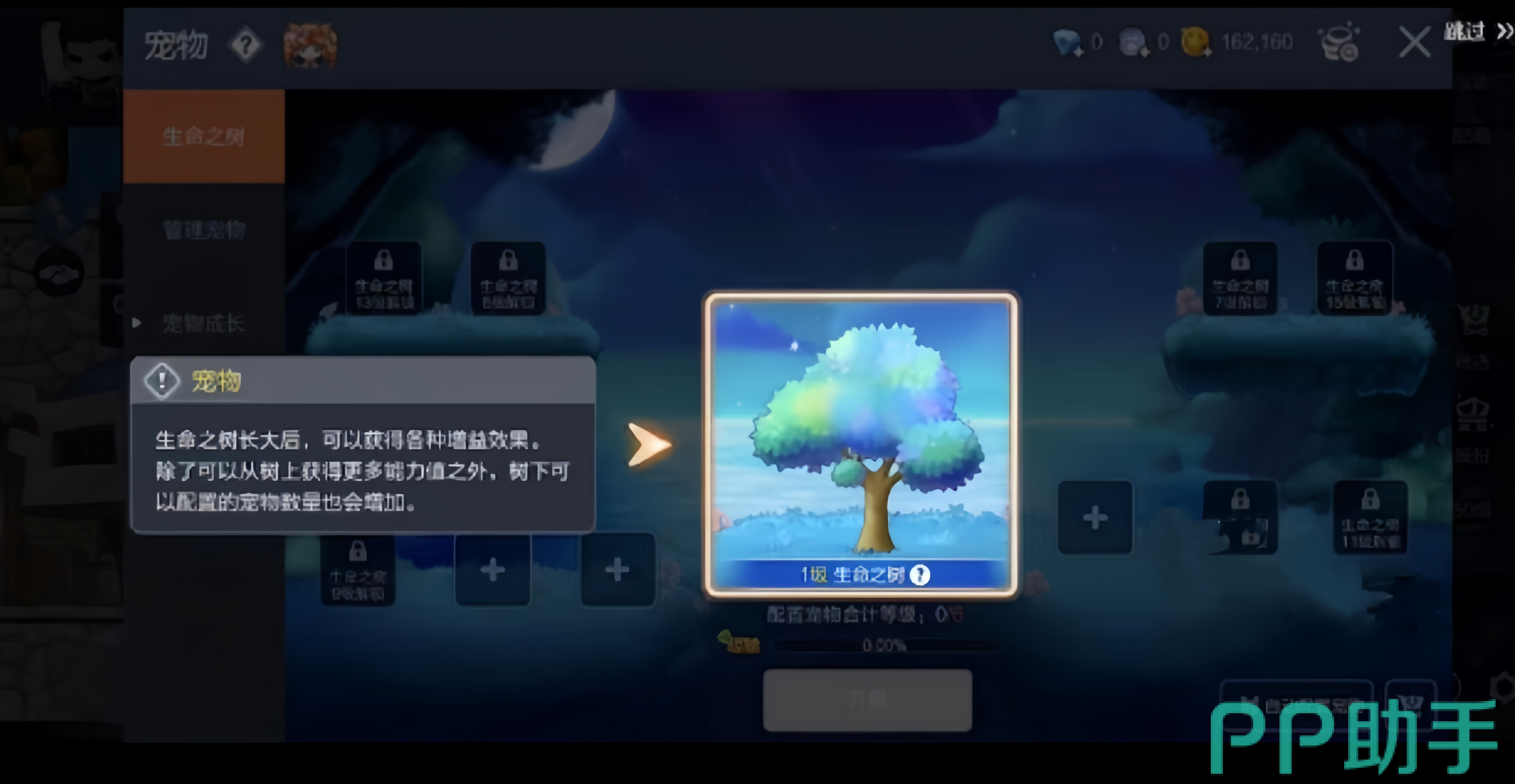 在面板之上还有一颗生命之树,玩家们将宠物移在生命之树上培养,能够让生命之树的能量场慢慢变大,而能量指数的功能就是为游戏的角色增加增益效果,随着生命数的增长上面能够放置的宠物数量也会随之增长。这一设置既可以帮助玩家们角色进行增益,也可以让生命之数加快生长,让宠物的生长速度也加快,是一个非常好的功能。