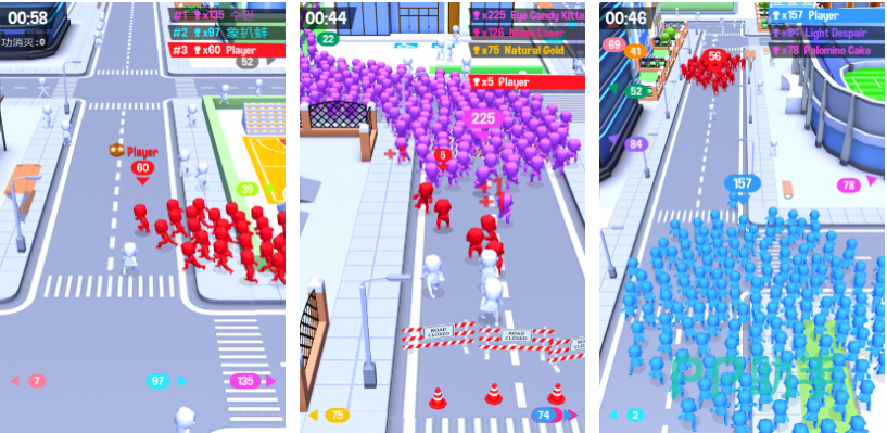 迷你动物大作战是款超级解压的吞噬类多人游戏,你可以操控一大堆色彩鲜艳的小人在城市里奔跑,边跑边转换其他的小人。独特又解压的玩法让玩家非常喜欢,竖屏单指操作的方式让手残党和懒人们爱不释手。游戏节奏明快而且画风特别精致,两支队伍冲撞在一起互相吞噬的画面极具视觉冲击力!