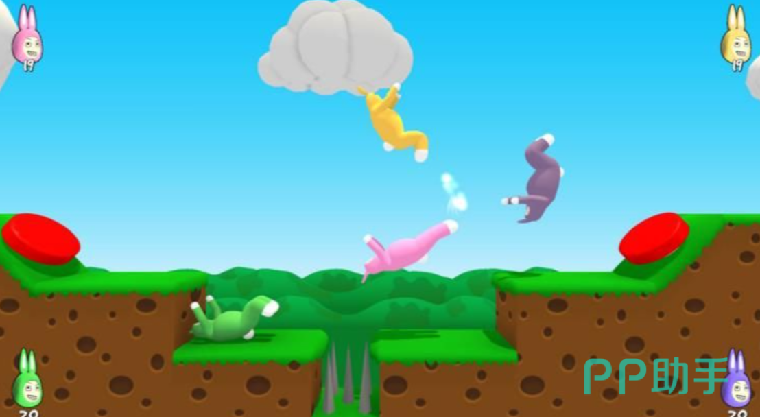 超级兔子人是款魔性十足的四人联机闯关类游戏,三维的整体画面跟人类一败涂地非常相似,四人一起闯关的玩法也让游戏的趣味性大大增加,三维立体的动态画面给人耳目一新的感觉。玩家需要与其他兔子人比赛过关,在复杂多变的地图中快速前进,你也可以用不同的道具陷害其他兔子人,诙谐搞笑的游戏气氛让许多玩家赞不绝口,你也进入这款兔子人游戏里放松心情吧。
