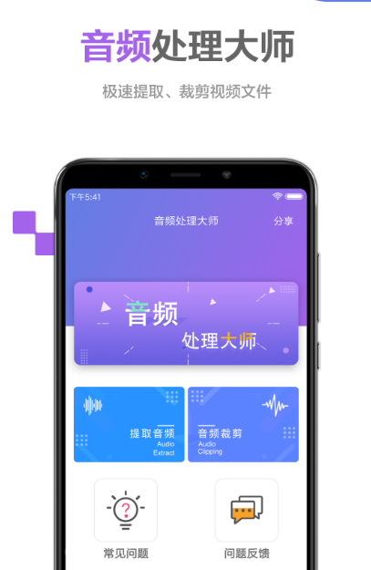 该软件自推出以来,受到了广泛媒体人群的热衷,作为一款非常专业的音频处理软件,无论是用来提取视频中的声音,还是添加一些精彩的声音,操作非常简单,能够以快速的方式来进行操作,还可裁剪、分割音频,去除没用的部分,进行音频转换及音频混合等。将制作好的音频效果通过一键分享出去,让用户在使用的过程中更便捷。