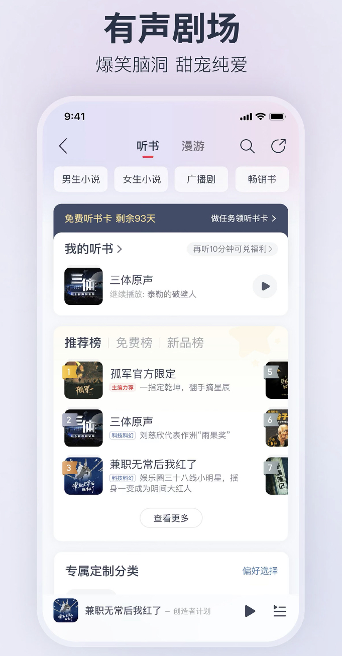 这是一款非常好用的听歌软件,它的功能也非常的强大,这里可以根据用户的喜好推荐同类型的好听歌曲,还有私人电台可以免费听,让用户徜徉在音乐的海洋里,用户还可以自己创建歌单,将喜欢的音乐添加在里面,还可以与朋友分享歌单,一起欣赏音乐,在这里还可以找到志同道合的音乐人,大家一起做网易云人。