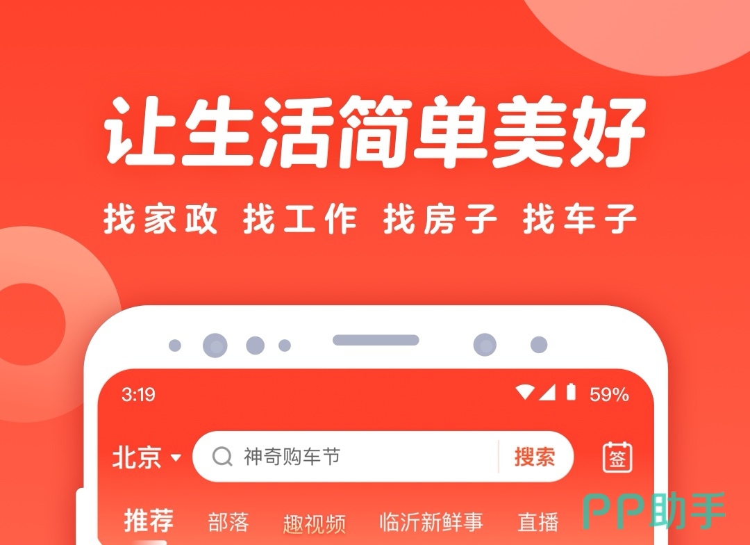 这是大家生活当中的小助手,找工作、租房、卖房、找二手车等等全都可以,海量的生活信息免费查询,新房源便捷舒适,大家可以利用定位或者是城市地区去选择就近的好房子。