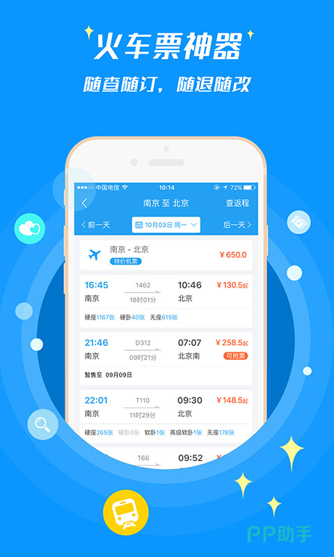 用户可以在线进行酒店的预定,机票的预定以及火车票的预定,还能够随时查看列车信息和航班信息,甚至进行余票的查询,平台的购票功能比较全面,用户可以在平台上直接退票,改签。选择更加适合的出行空间,完全能够满足外出旅行。可以随时进行机票的预定,速度也非常快。
