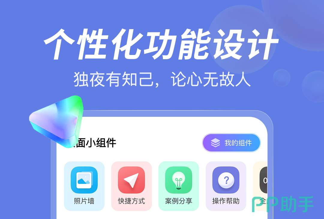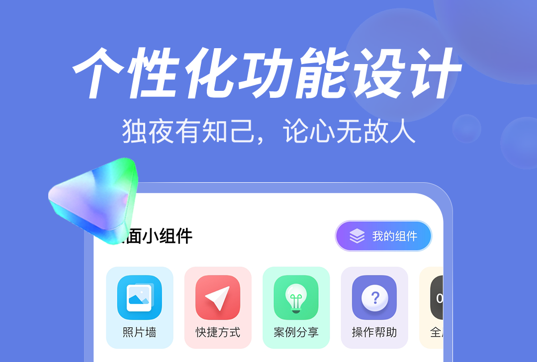 有一些软件的功能如果可以直接放到桌面上面的话,就可以直接打开,下次无需费力寻找相关软件。在这里就提供了许多实用的小组件,例如音乐播放界面,以及天气记步等功能。并且还提供了海量的精致图标,富有创意,可以让你随心挑选,满足你的创作欲望。