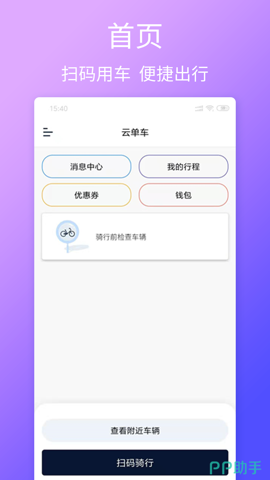 在大学校园里,随处可见的是各种品牌的共享单车。这是大多数大学生的出行方式。骑电单车这款APP。就是可以支持用户扫码开车和还车服务的一款骑单车的软件。相对于打车来说。骑电单车更加的灵活,随用随开就可以。而且如果遇到上下班儿的拥堵时间骑电单车是最快的一种交通方式。